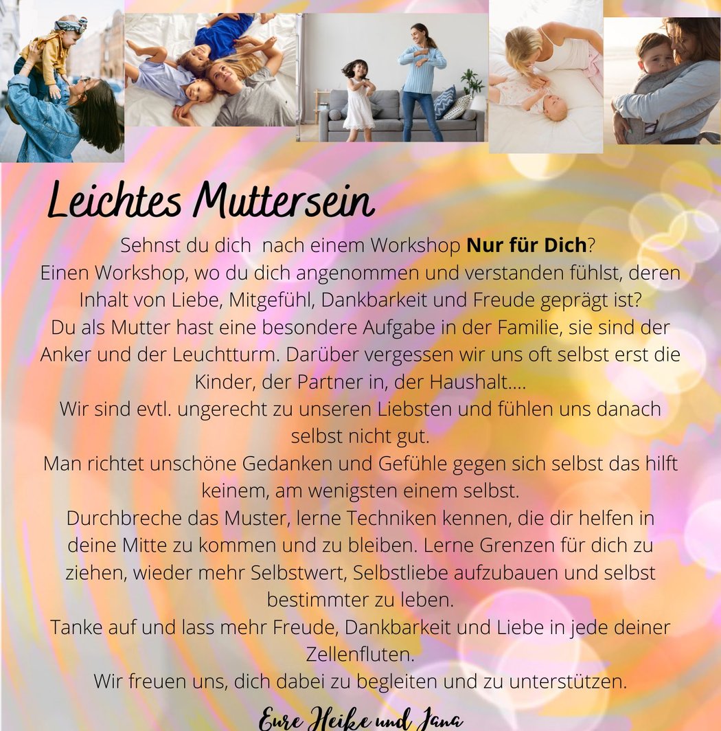 ich wollte nochmal Danke sagen für den gestrigen Tag und für eure Mühen. Der Austausch mit euch und den anderen Mamas tat unglaublich gut. Ich fühlte mich nach dem Workshop leicht und befreit und habe die Chance gleich genutzt und Zeit mit einer Freundin verbracht.